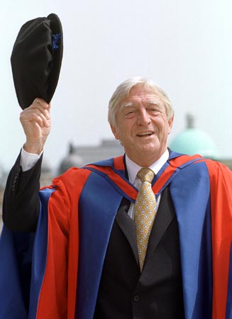 Michael Parkinson receives an honorary degree from the University of Lincolnshire and Humberside.