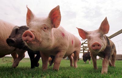 A pig race at Cruckley Animal Farm, East Yorkshire.