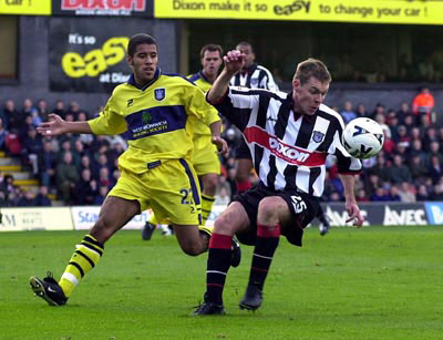 Grimsby Town's Bradley Allen takes on West Brom's James Chambers