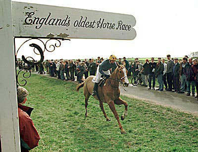Equestrian dentist Ken Holmes, 66, of Selby, rides to his 9th victory in England's oldest horse race, the Kiplingcotes Derby